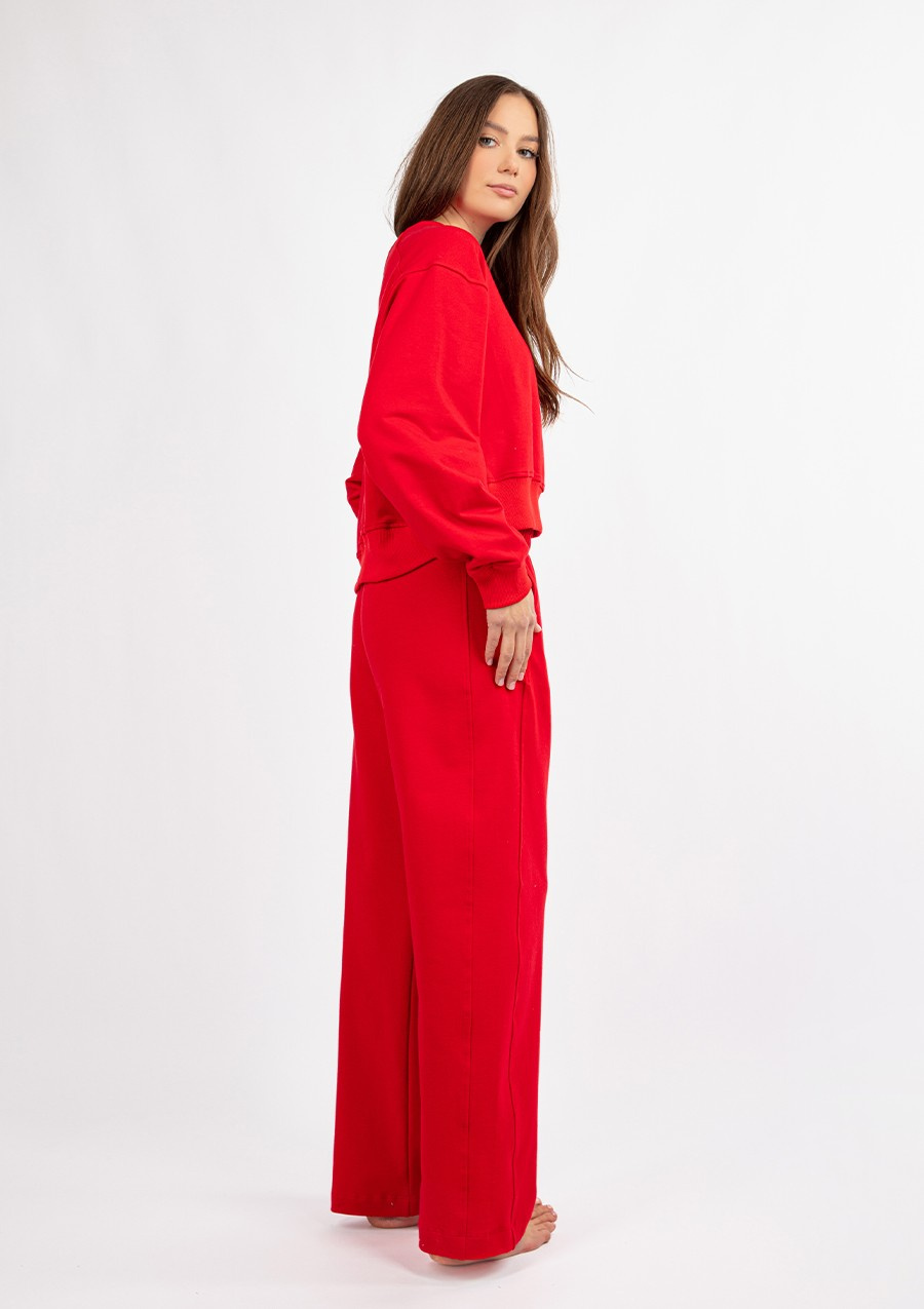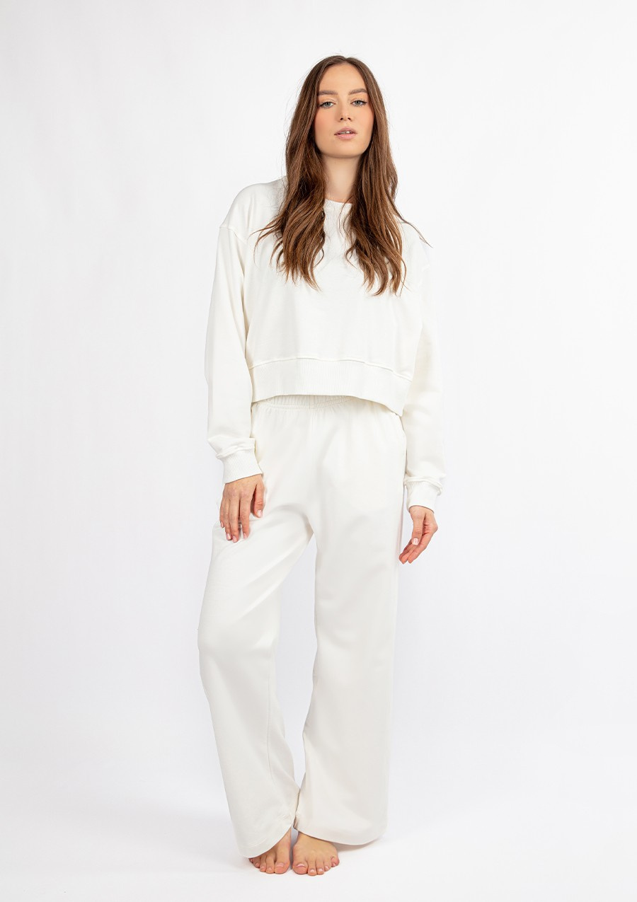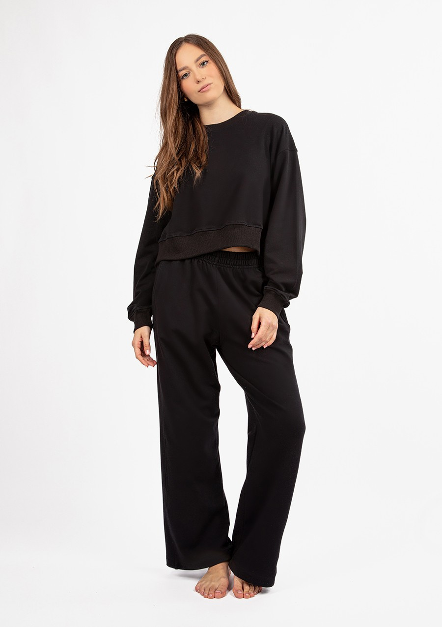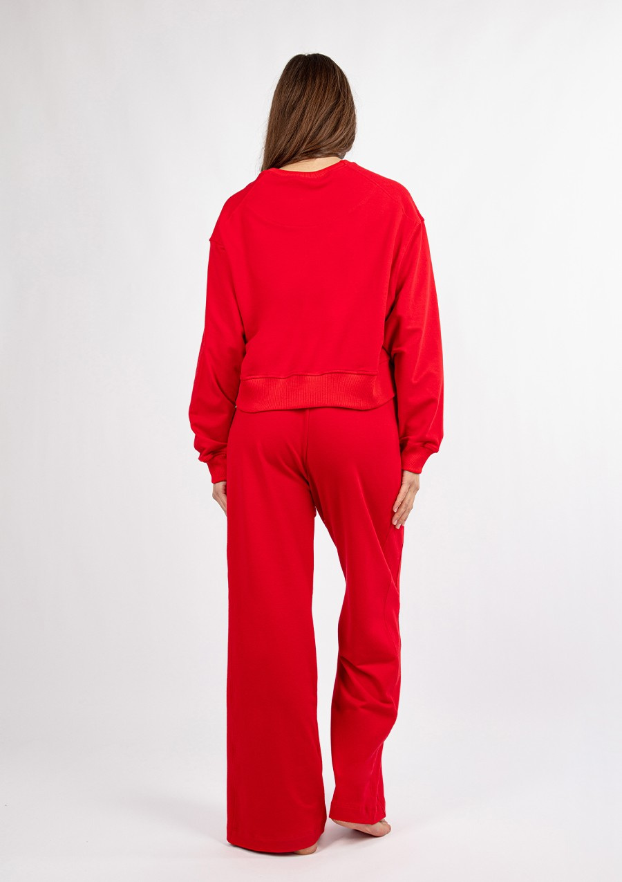 Komplet składa się z długich spodni oraz bluzy z długim rękawem, co sprawia, że idealnie nadaje się na każdą porę roku. 95% bawełny oraz 5% elastanu gwarantuje doskonałe dopasowanie do sylwetki, a także komfort noszenia przez cały dzień. Materiał jest cienki, ale jednocześnie wytrzymały, co zapewnia przyjemność noszenia, nawet w ruchu. Gładka struktura materiału ułatwia pielęgnację i sprawia, że dres wygląda jak nowy nawet po wielu praniach.