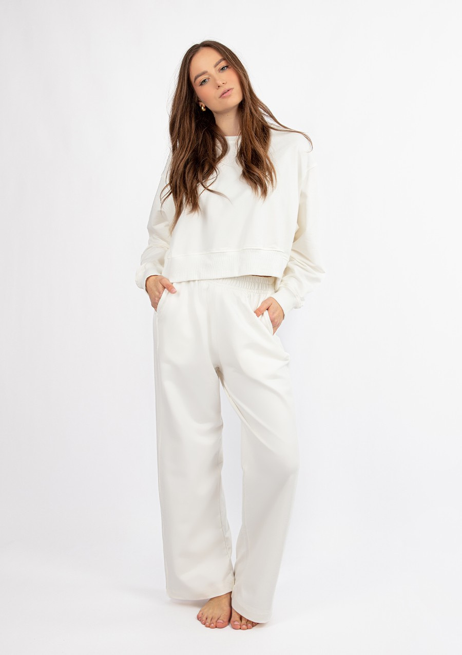 - Modny i uniwersalny kolor ecru, pasujący do wielu stylizacji.