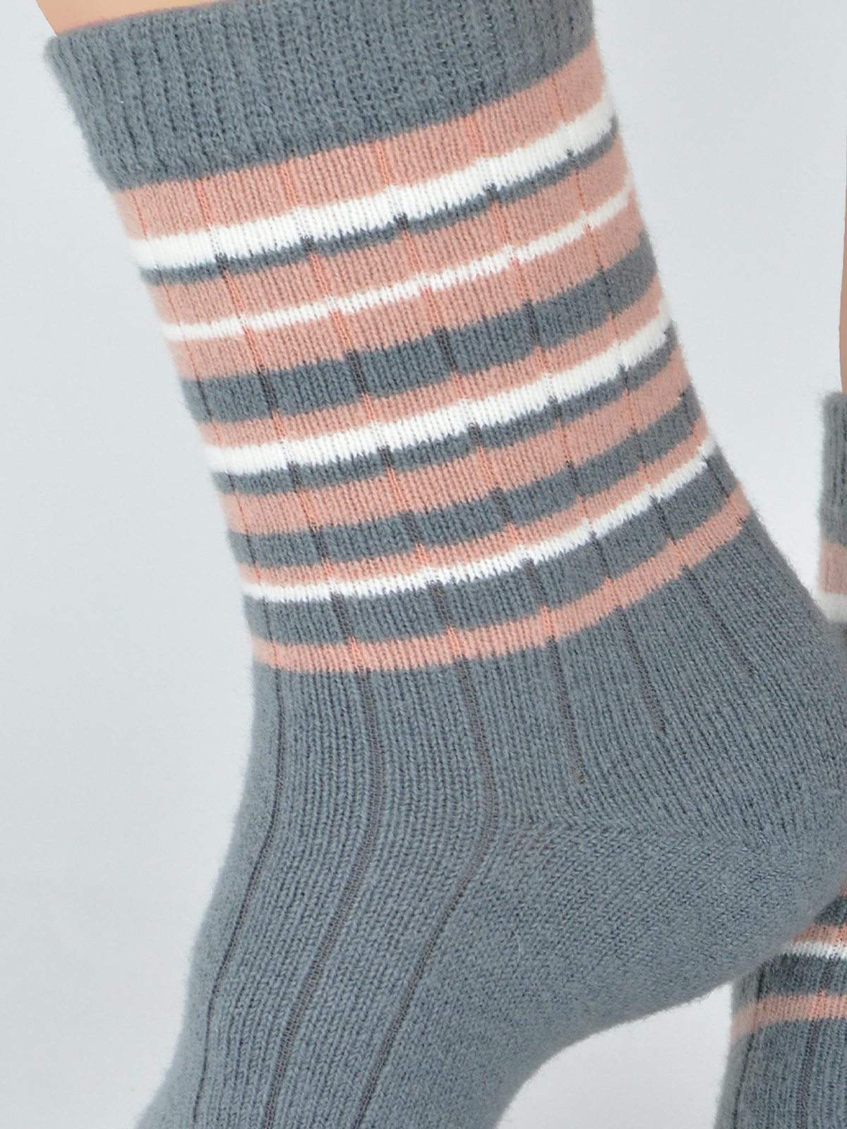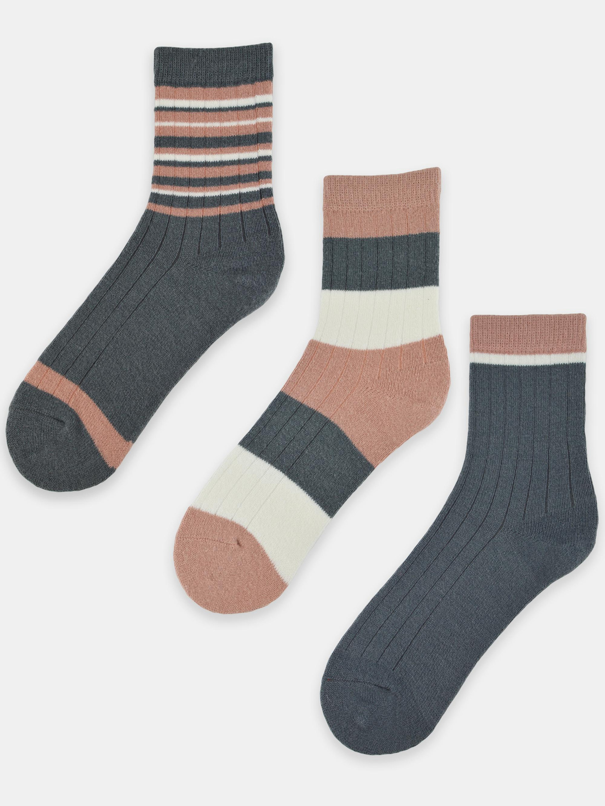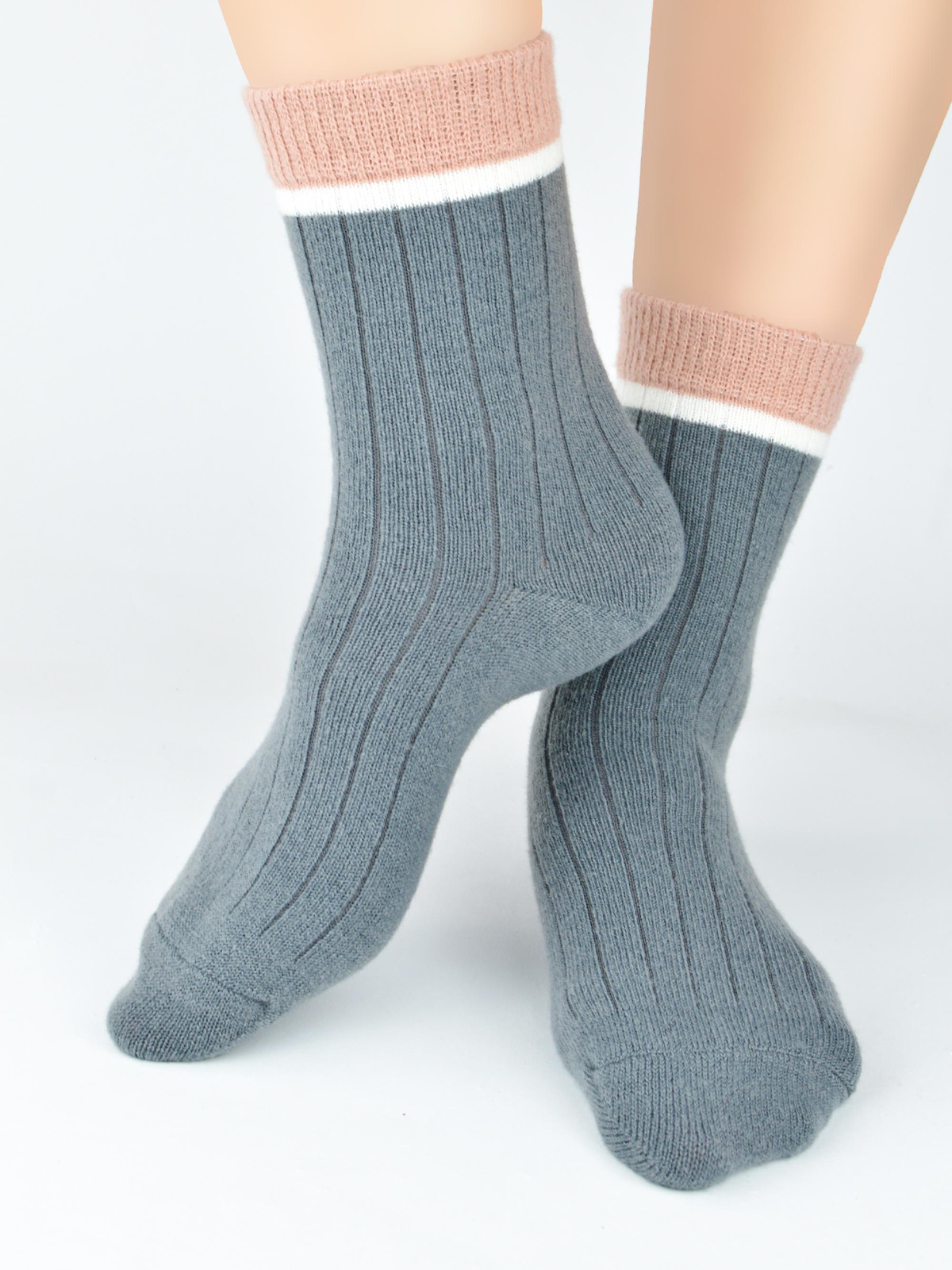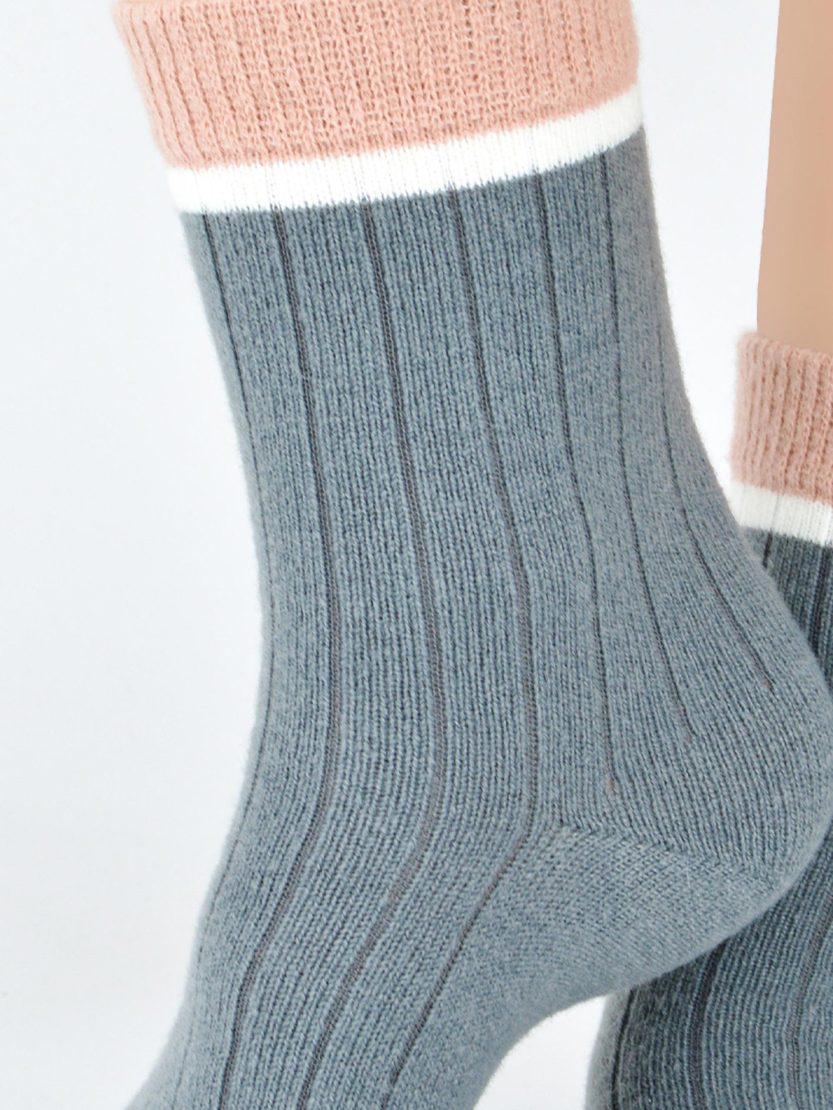 - Ciepłe akrylowe skarpety z dodatkiem wełny, idealne na zimne dni i wieczory. Zestaw 6 par ciepłych skarpet w tonacji ciemnoszarej , z 3 różnymi wzorami w kolorze brudnego różu.