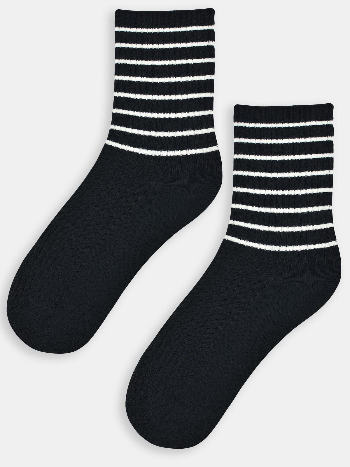 Skarpety damskie z wełną w paski SB140 czarne - Noviti to idealna propozycja dla kobiet, które cenią sobie komfort, styl i wysoką jakość. Nasze skarpetki łączą w sobie elegancję oraz funkcjonalność, co sprawia, że są niezastąpione w każdej kobiecej szafie.
