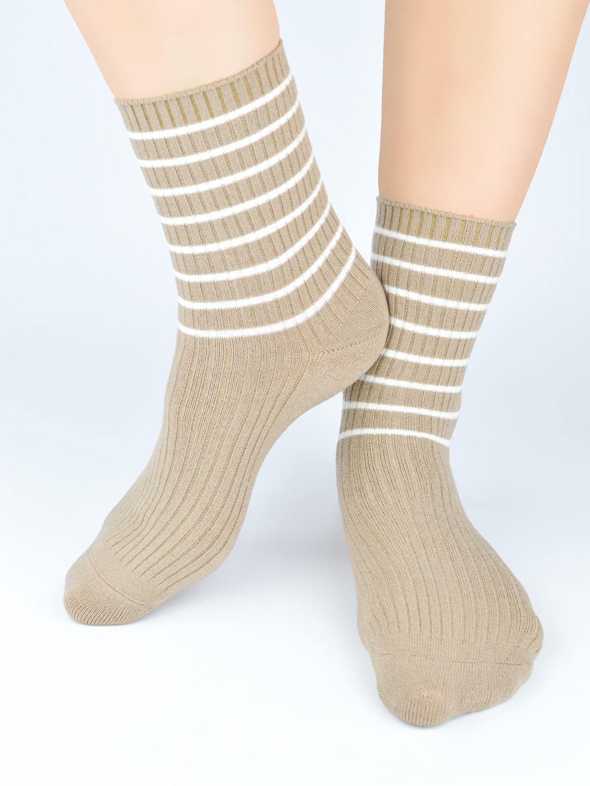- Ciepłe akrylowe skarpety z dodatkiem wełny. Wygodne miękkie skarpetki damskie ze wzorem w kontrastowe paski, idealne na zimne dni i wieczory.
