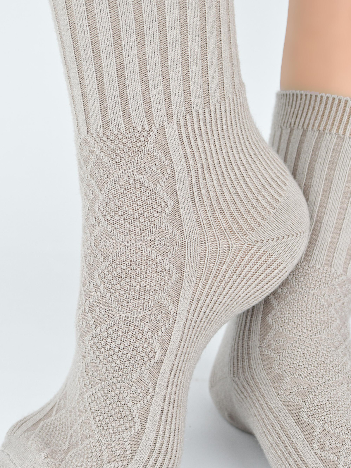 Skarpety damskie z wełną w prążek SB142 cappuccino - Noviti to połączenie komfortu, stylu i funkcjonalności, które każda kobieta powinna mieć w swojej szafie. Te wyjątkowe skarpetki to idealny wybór na chłodne dni, zapewniające ciepło i wygodę, dzięki czemu możesz poczuć się pewnie niezależnie od sytuacji.
