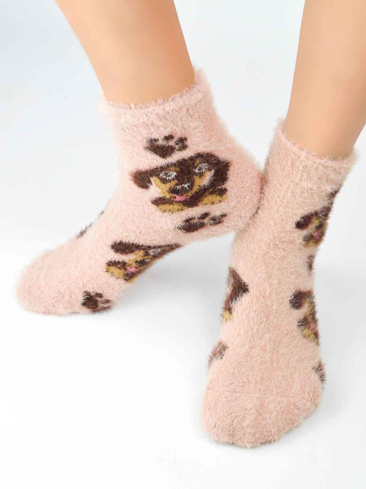 Wygodne ciepłe skarpetki damskie z uroczym zabawnym wzorem. Puchate skarpetki to idealna propozycja na zimne dni, z przyjemnością ubierzesz je też do szlafroka czy piżamy. Skarpetki z zabawnym wzorem zawsze sprawdzają się jako drobny upominek na różne okazje.