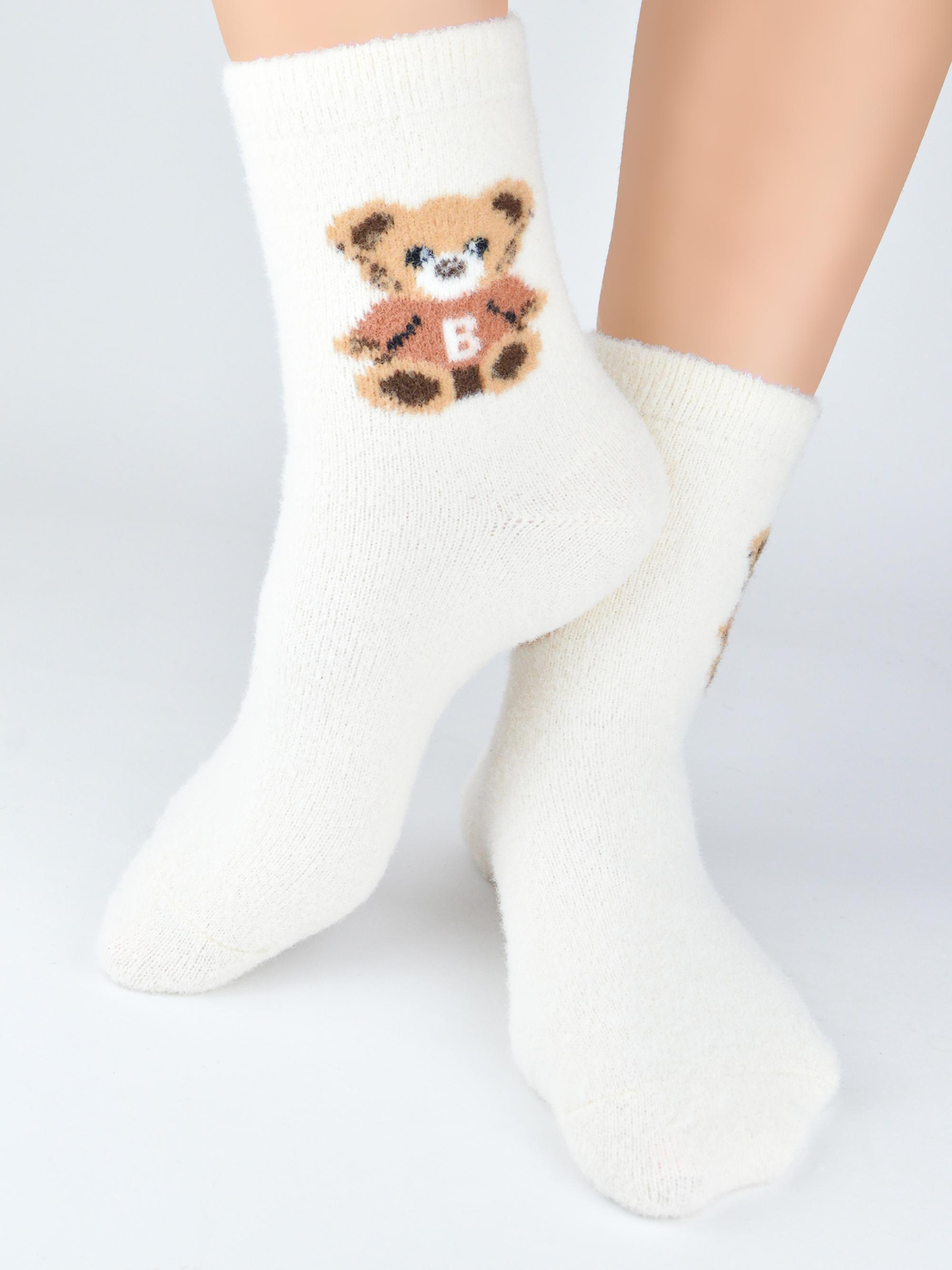 - Puchate, słodkie skarpetki z zabawnym misiaczkiem. Cieplutkie urocze skarpetki damskie.