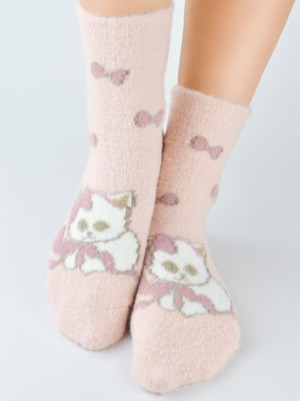 Wybierz Puchate Skarpetki z kotkiem i kokardkami SP019 i poczuj magię komfortu oraz stylu na własnej skórze!