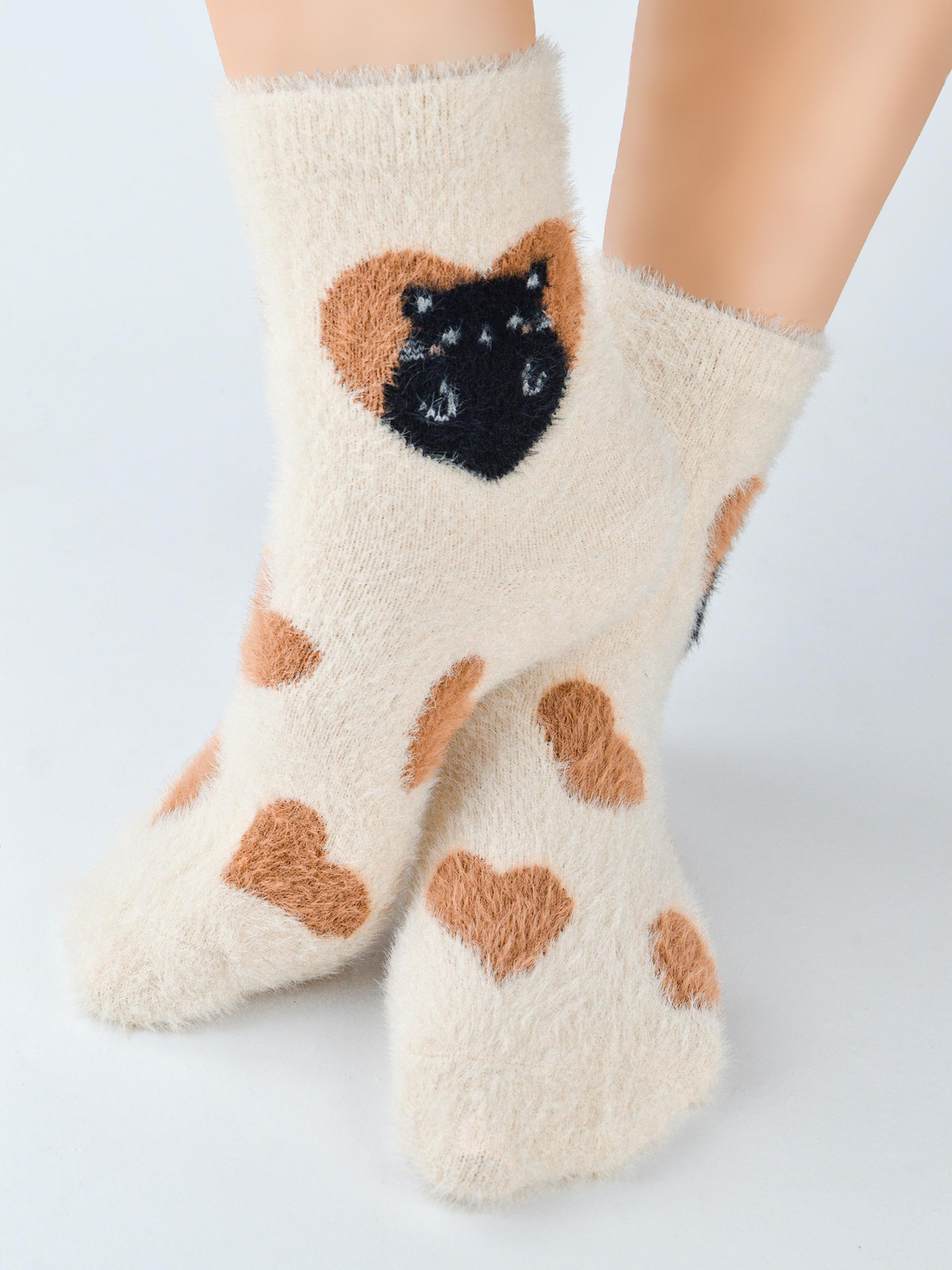 Puchate Skarpetki z kotkiem i serduszkami SP020 - Noviti