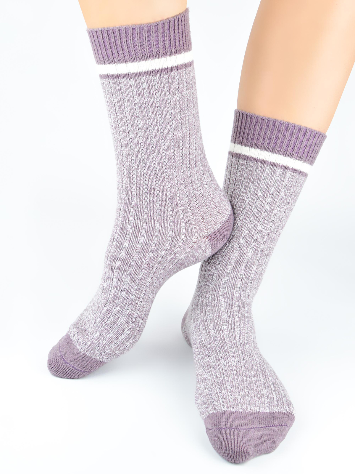 - Długie, prążkowane skarpetki marki Noviti. Dzięki dodatkowi prawdziwej wełny, doskonale trzyma ciepło. Uroku dodają paseczki w ciemniejszych i jaśniejszych kolorach.