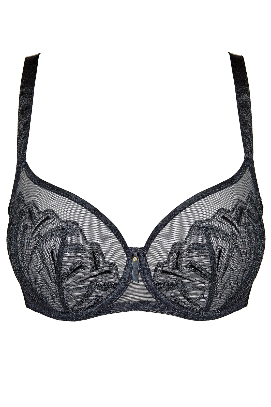 - Gustowny, miękki biustonosz z haftem na prześwitującej misce.
